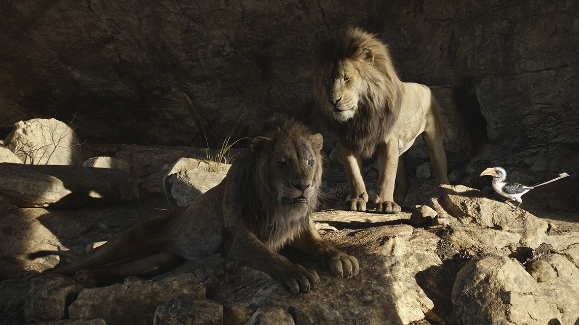 El trabajo detrás de cada animal que vemos en la película es magistral. Desde la melena de Mufasa, hasta el más diminuto insecto en pantalla, nos dejan en claro el esfuerzo que los animadores pusieron en esta película. En ningún momento puedes dejar de apreciar los escenarios, el trabajo de iluminación en el agua, el verde de la naturaleza e incluso lo árido del desierto. Todos y cada uno de estos lugares fueron diseñados por medio de técnicas increíbles en escenarios de realidad virtual con un inmenso trabajo de CGI que supera por mucho lo visto en The Jungle Book.