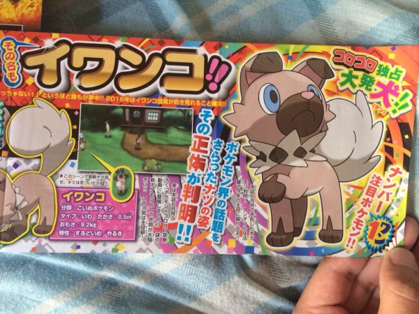 La primera revelación es Iwanako (nombre japonés), se trata de un Pokémon tipo Roca y será conocido como el «Pokémon Cachorro», la publicación señala que lo podremos conseguir con la habilidad Keen Eye o Vital Spirit. El segundo Pokémon revelado es Nekkoala (en Japón), de tipo Normal y con la habilidad Definite Sleep. En ambos casos, parece ser que se trata de Pokémon bastante comunes.