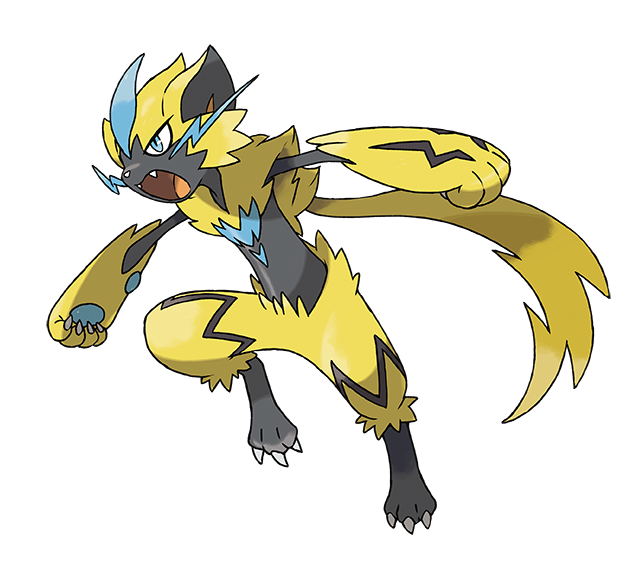 Zeraora es un Pokémon de tipo Eléctrico capaz de acumular electricidad de fuentes externas para crear un potente campo magnético gracias a las intensas corrientes eléctricas que emite con las almohadillas de sus extremidades. Esto le permite levitar y desplazarse por el aire a gran velocidad.