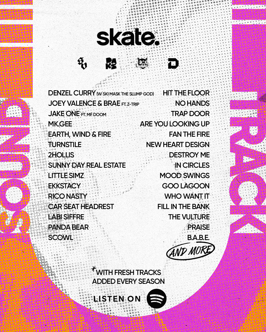 skate. publicó el listado completo de su banda sonora antes del lanzamiento del acceso anticipado el 16 de septiembre. La selección incluye artistas emergentes y consolidados como Little Simz, Turnstile y Denzel Curry, diseñada para evolucionar junto con cada temporada y mantener las sesiones frescas y llenas de energía.