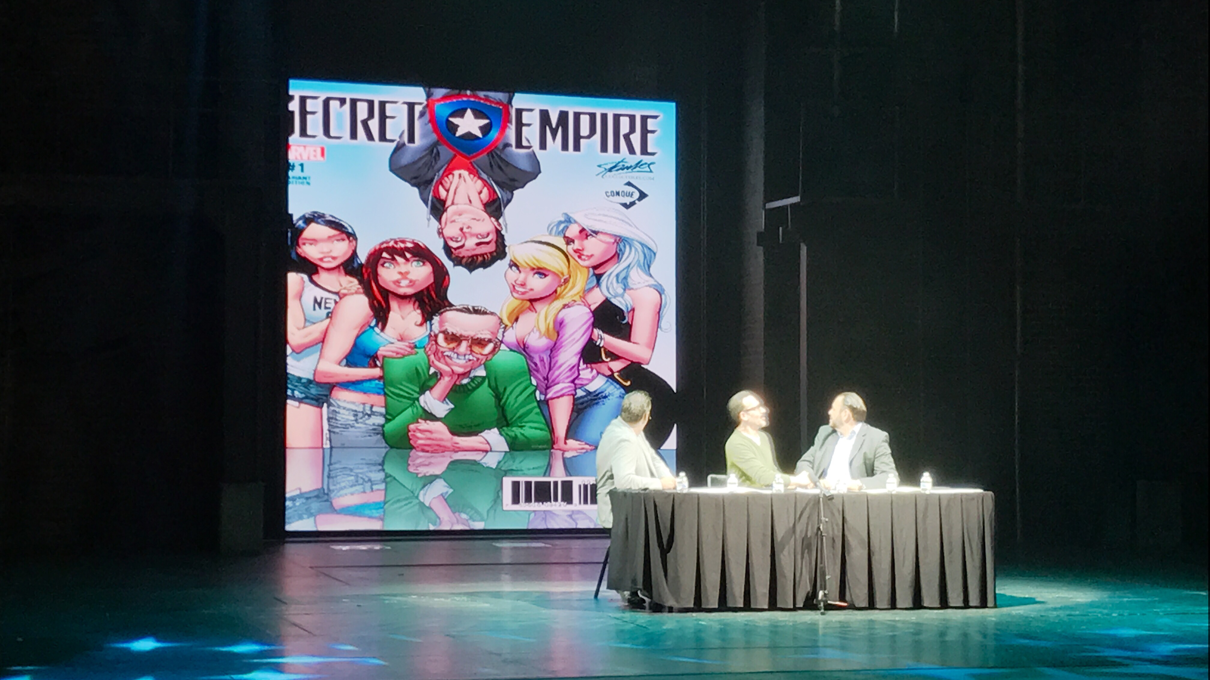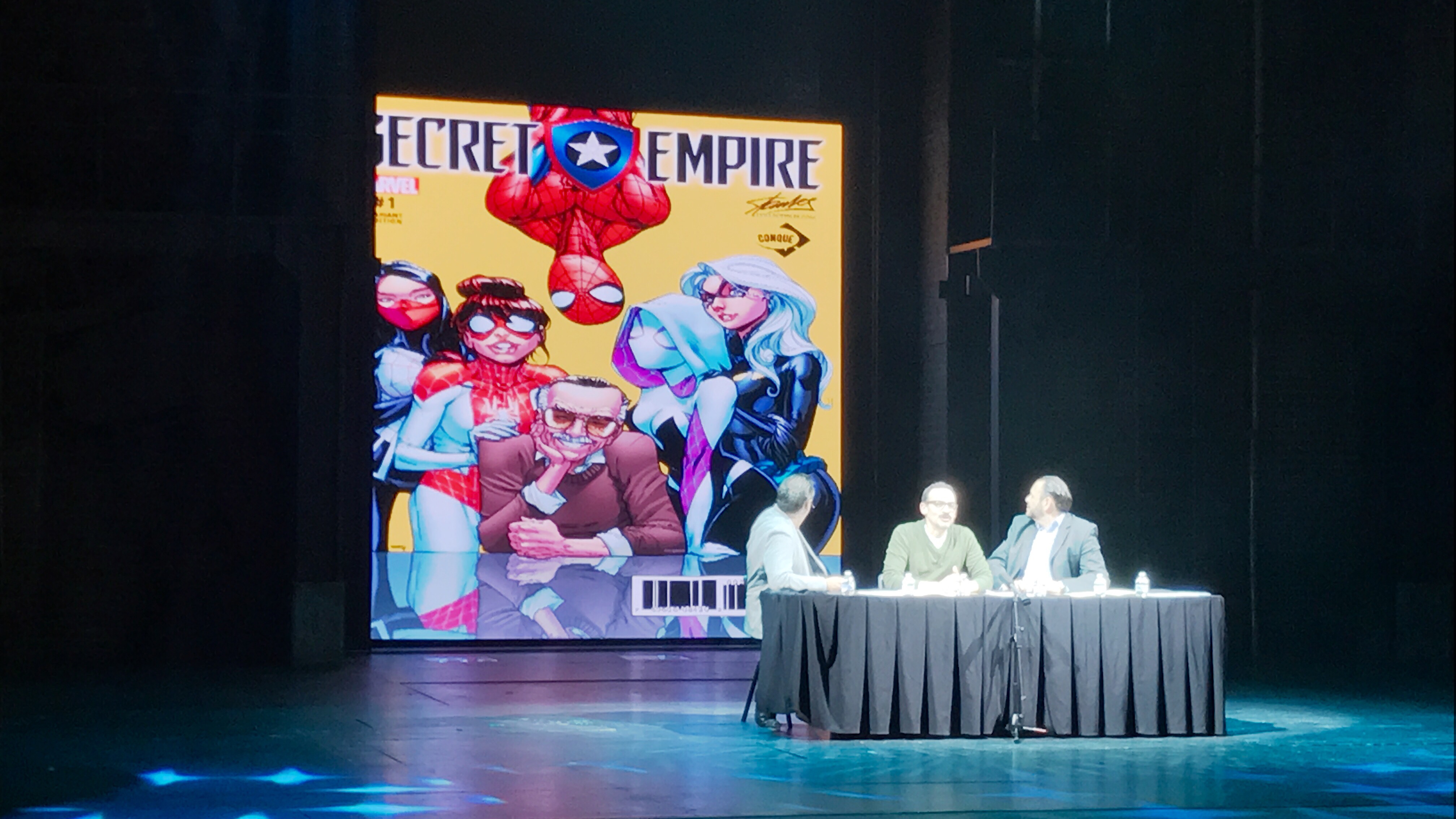 Para finalizar les compartimos algunas fotos de la conferencia de prensa, en donde podrán observar las portadas de Secret Empire realizadas por Humberto Ramos y Scott Campbell para el evento, así como el print especial de Colossus y el póster conmemorativo de Conque 2017.