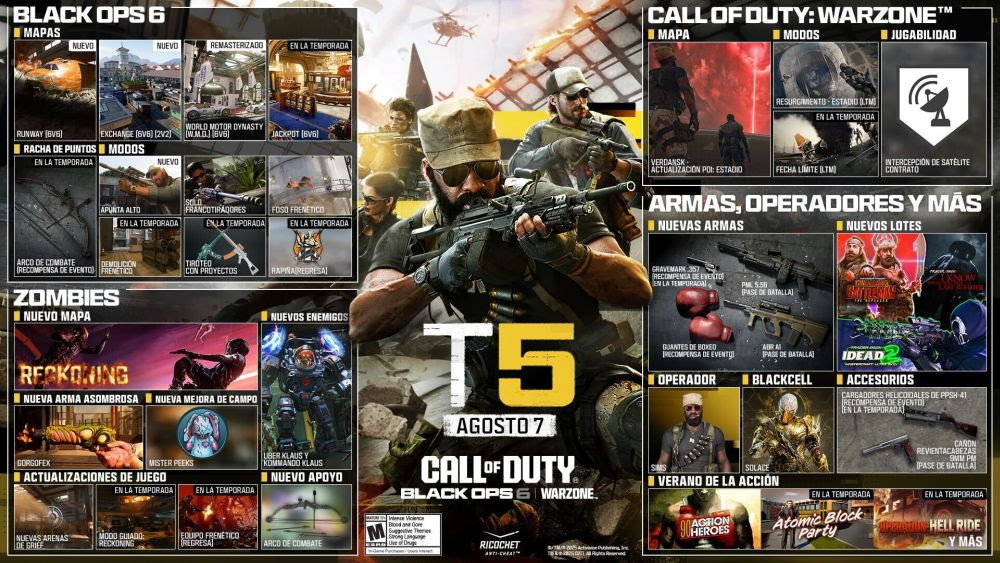 Activision ha revelado todo el contenido que llegará con la Temporada 5 de Call of Duty: Black Ops 6 y Warzone, disponible a partir del 7 de agosto. Esta actualización representa un momento clave para los operadores, quienes deberán enfrentarse al desenlace de la historia de Zombis y nuevos escenarios multijugador que combinan acción táctica con pura adrenalina.